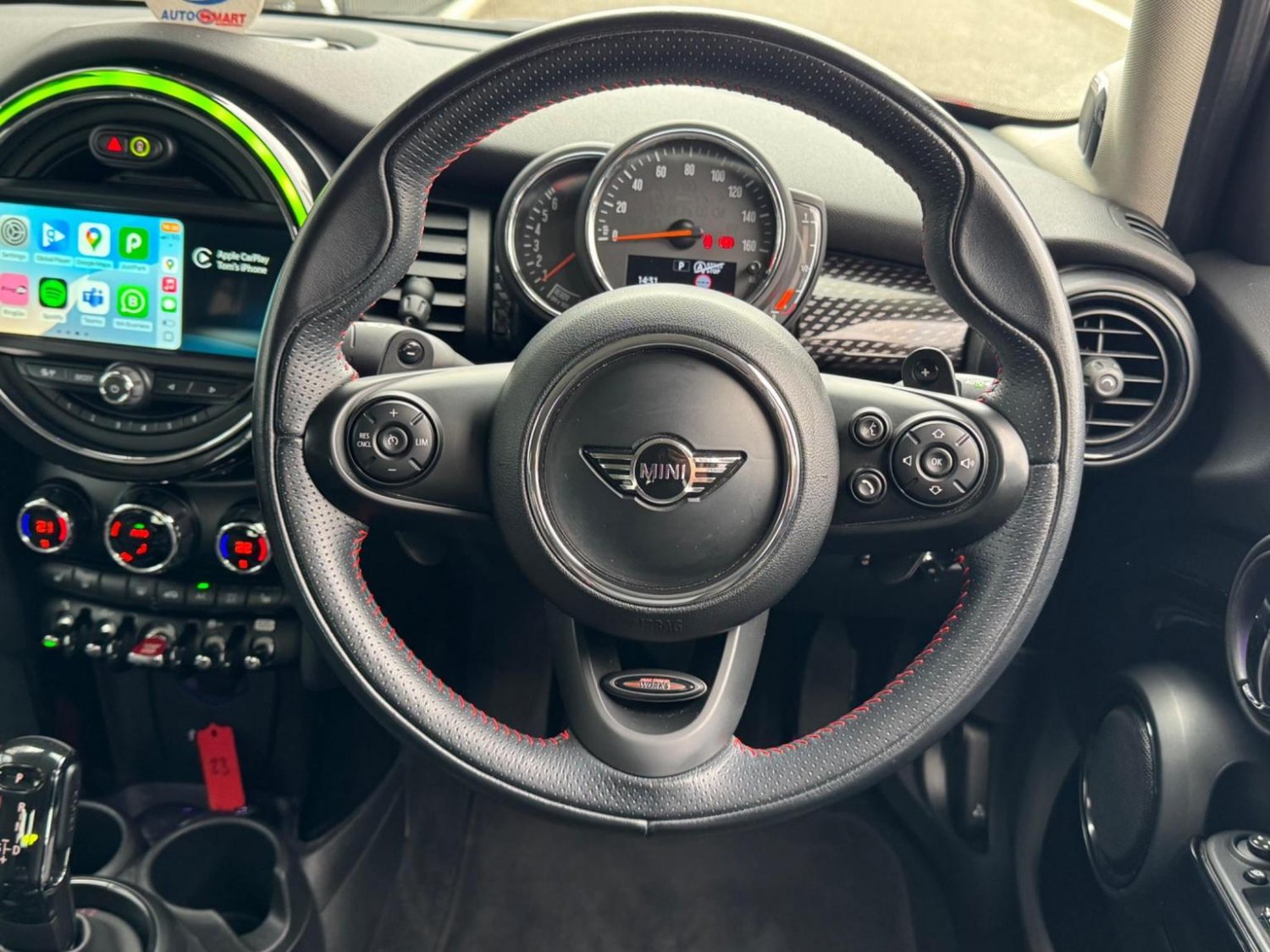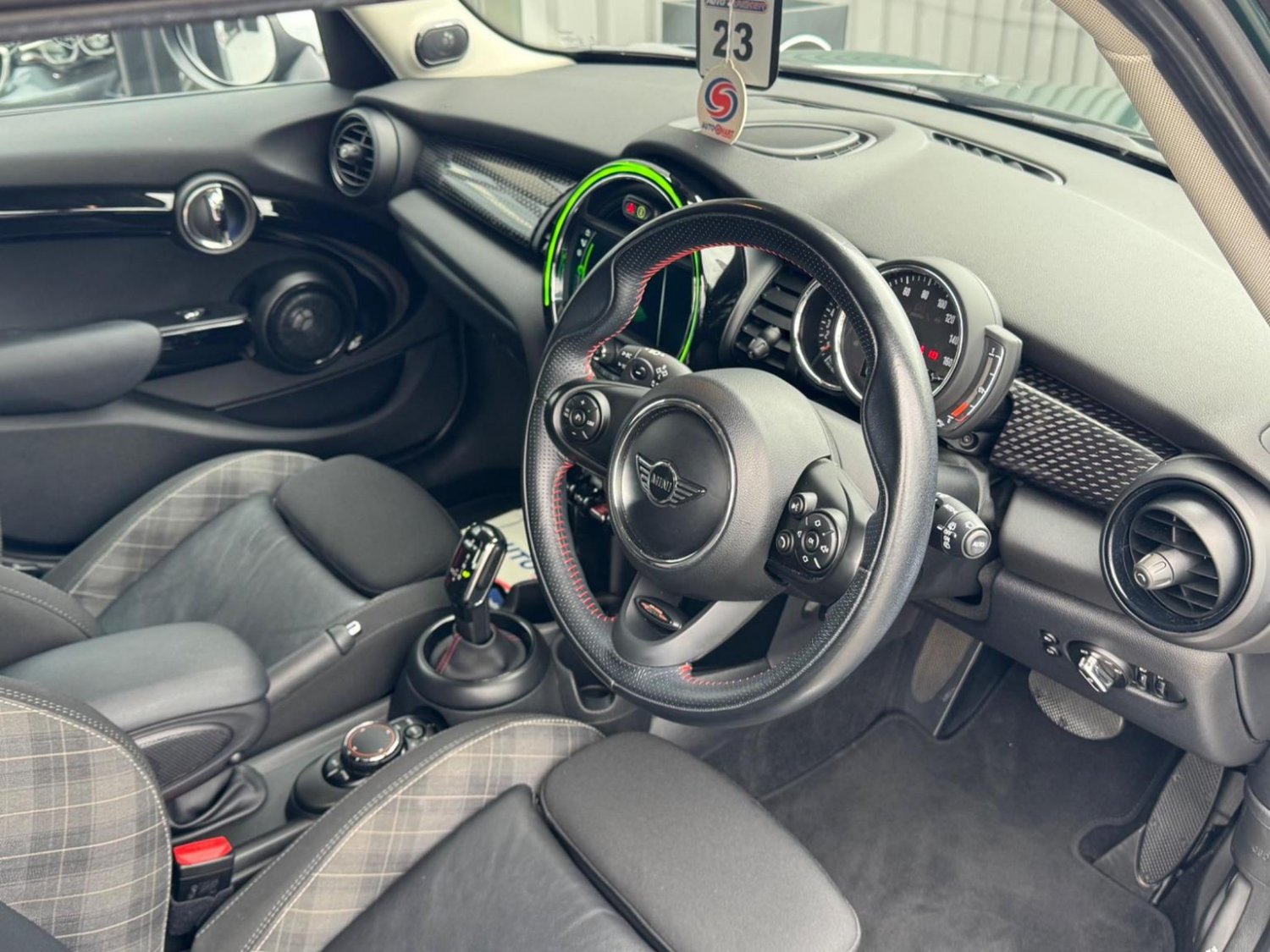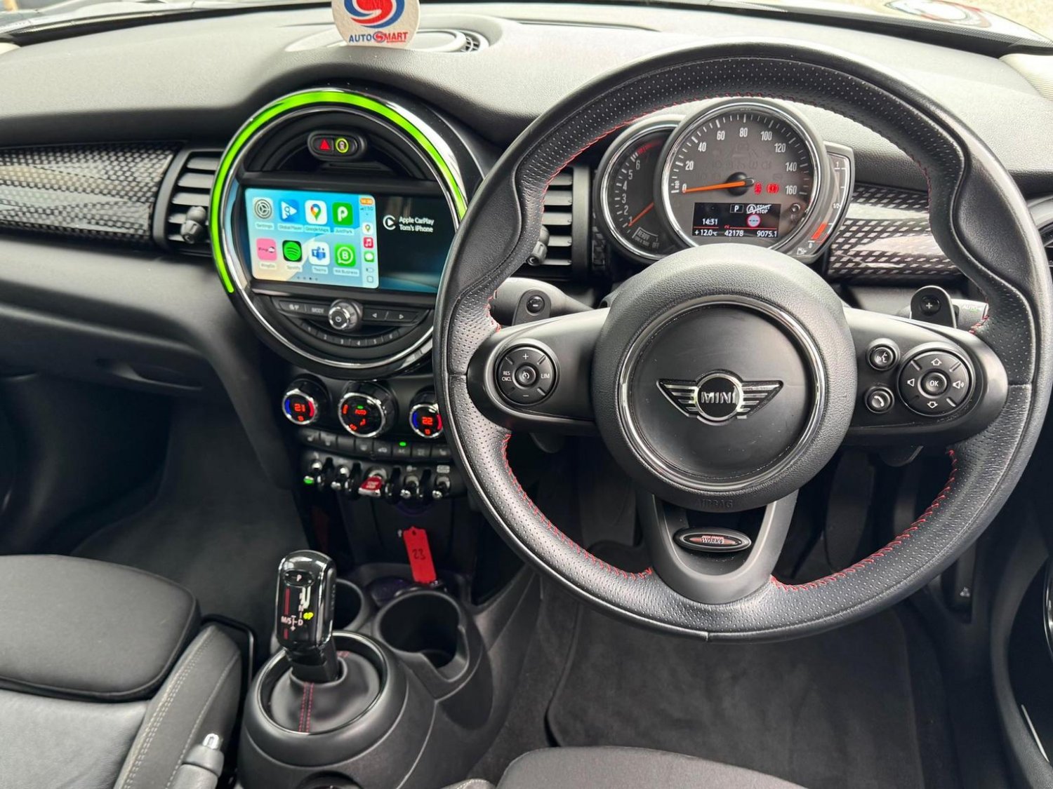 Bluetooth Hands Free Function with USB Audio, Boot Release via Remote Control, Brake Pad Wear Indicator, Chrome Bezels around Rear Lights and Headlights, Chrome-Plated Fuel Filler Cap in Rear Right Side Panel - Linked to Central Locking, Colour Line - Carbon Black, Condition Based Service, Crash Sensor, Cupholders - Two in Front and One in the Rear Centre Console, DAB Tuner, DTC - Dynamic Traction Control with EDLC - Electronic Differential Lock Control, Decorative Rings Surrounding Dashboard Instruments in Chrome Plated, Door Handles - Chrome Plated, Door Sill Finishers - Metal Look and Model Dependent Lettering, Dynamic Stability Control - DSC, Engine Scoop in Body Colour, Exhaust Tailpipe - Visible Double Round Central with Chrome Finishers, Exterior Mirrors - Aspheric on Drivers Side - Electrically Adjustable, External Visible VIN, Foldable Rear Backrest 60-40, Follow Me Home Function, Front Passenger ISOFIX and Airbag De-Activation Switch, Front Side Indicators - White, Fuel Pump Automatic Cut-Off in Crash Situation, Gearshift Lever Knob - Leather, Gearshift-Selector Lever and Handbrake Lever Gaiters in Sensatec Artificial Leather, Handbrake Lever Grip - Plastic, Headlight - Beam-Throw Control Electrical with Manual Adjustment, Headlights and Daytime Running Lights - LED, Headliner - Satellite Grey, Headrests For All Seats - Manually Adjustable, Heated Mirrors and Windscreen Washer Jets, Heated Rear Window with Automatic Deactivation, Heated Window Heater, Intelligent Emergency Calling - E-Call, Interior Door Handles - Chrome Plated, Interior Lights - Integrated into Centre Front Headliner, Interior Mirror - Mechanical Anti-Dazzle, Interior Surface in Black Chequered Design, Interior Trim - Black Chequered, John Cooper Works Sport Leather Steering Wheel, LED Fog Lights, Lashing Eyes in Luggage Compartment, Locking System with Central Locking, Luggage Compartment - Light, MINI Central Display with Illuminated Ring, MINI Mobility System, MINI TeleServices, MINIMALISM Fuel Saving Technology, Mechanical Seat Adjustment - Six Way Drivers Seat, Microfilter, Mirror Caps in Body Colour, Multifunction Controls for Steering Wheel, Non Smoker Package, Oddments Trays at Rear - Right and Left, On-Board Computer, Performance Control, Personal Profile, Power Steering with Servotronic, Radiator Grille - Chrome Border with Honeycomb Structure in Batt Matt with S Logo, Radio with Four-Line Display, Rear Fog Light, Rear Window Wiper, Reversing Light, Revolution Counter, Roof Spoiler Painted in Roof Colour, Roof in Body Colour, Security Locking Wheel Bolts, Side Scuttles Chrome-Plated with Red S Lettering with Integrated Direction Indicator White, Sills - Bumper Edges - Wheel Arch Cover in Black, Speakers - Two Mid Range in Front Doors and Two Woofers under Front Seats, Speedometer on Steering Column, Sport Seats for Driver and Front Passenger, Stainless Steel Embellisher at Bottom Edge of all Windows, Start-Stop Button with Keyless Start, Steering Wheel Column Adjustment Mechanically in Height and Length, Storage Options, Sun Visors with Integrated Vanity Mirrors on Drivers and Passengers Sides, TPWS - Tyre Pressure Warning System, Tailgate Handle - High Gloss Black, Tool Kit in Luggage Compartment, Twin Horns, White Indicators, Window Lifts - Electrical for Drivers and Front Passengers Sides, 12Volt Socket in Front Centre Console, 16in Alloy Wheels - Loop Spoke in Silver, 3 Point Seatbelts on all Seats, 3rd Brake Light - White, Air Conditioning - Manual, Airbags for Driver and Front Passenger - 6 Airbags as Standard, Alarm and Immobiliser - Thatcham CAT 1, Anti-Lock Braking System - ABS, Automatic Door Window Lowering by Approx 6mm When Door Opens
