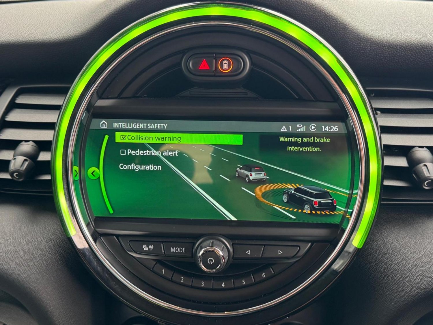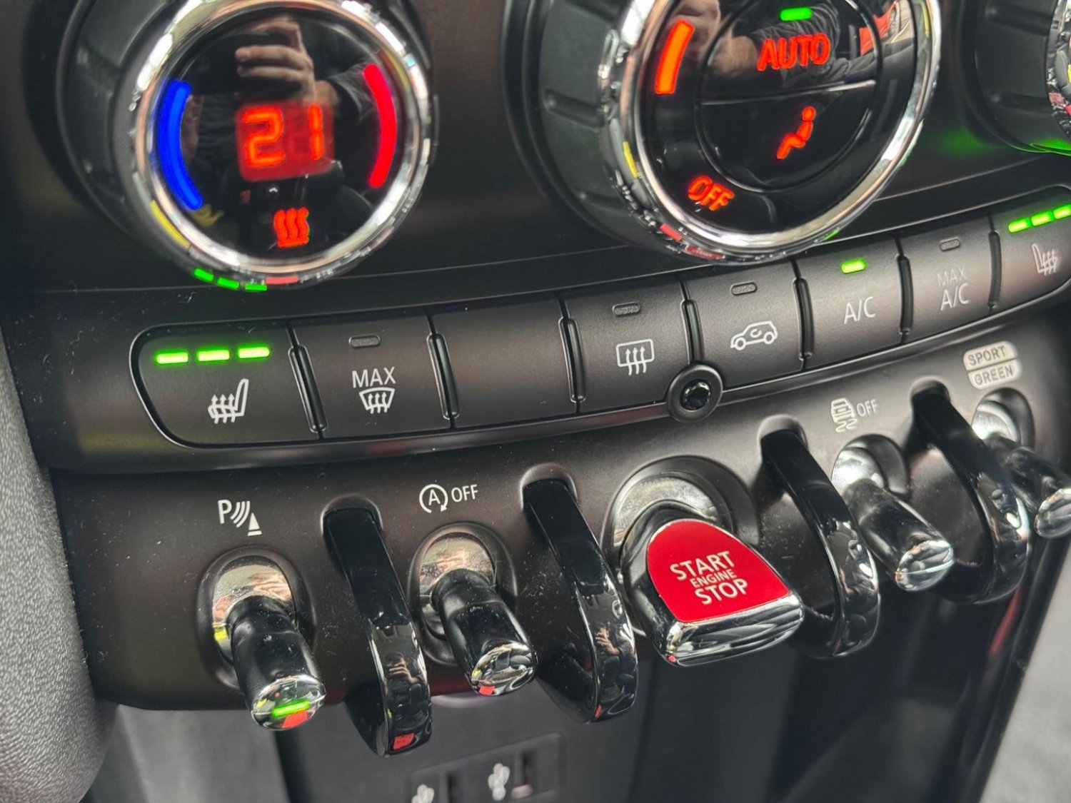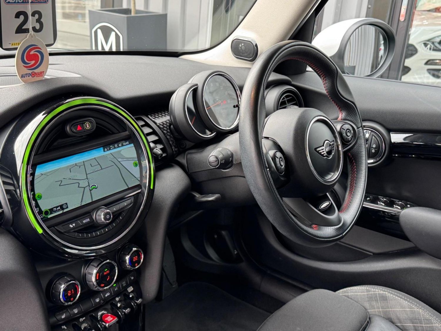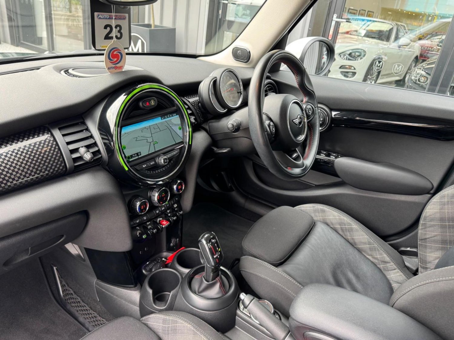 CHILI Pack, Navigation Plus Pack, Navigation, 17in Alloy Wheels - Tentacle Spoke with Run-Flat Tyres, Harman Kardon Hi-Fi System, Park Distance Control - Front and Rear, Driving Assistant Pack, Air Conditioning - Automatic Dual Zone, Seat Heating for Driver and Front Passenger - 3-Stage Heating Adjustment, Darkened Rear Glass, Rear Accessory Carrier Preparation, Cruise Control with Brake Function, MINI Excitement Pack, Electrically Folding Exterior Mirrors, MINI Driving Modes, Storage Compartment Pack, Bonnet Stripes - White, Front Centre Armrest, Interior Light Pack, Rain Sensor and Automatic Headlight Activation, Bluetooth with Wireless Charging, Roof and Mirror Caps - White, Diamond Cloth-Leather - Carbon Black - Carbon Black