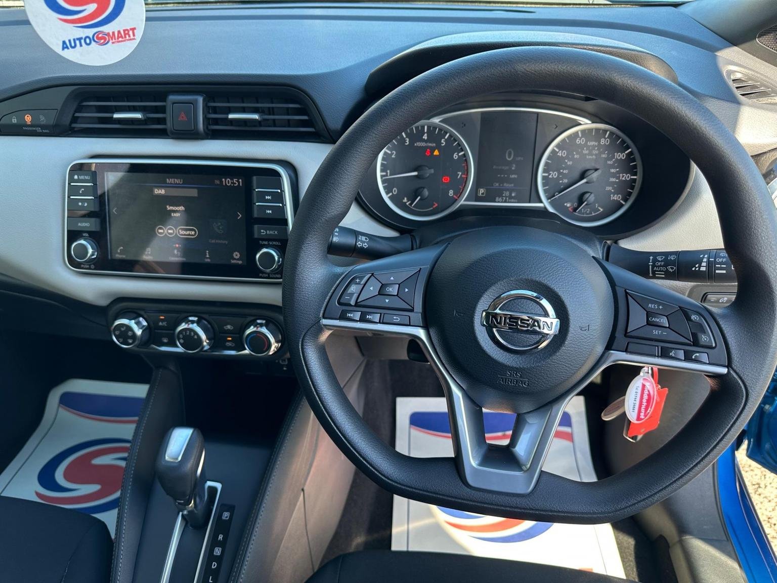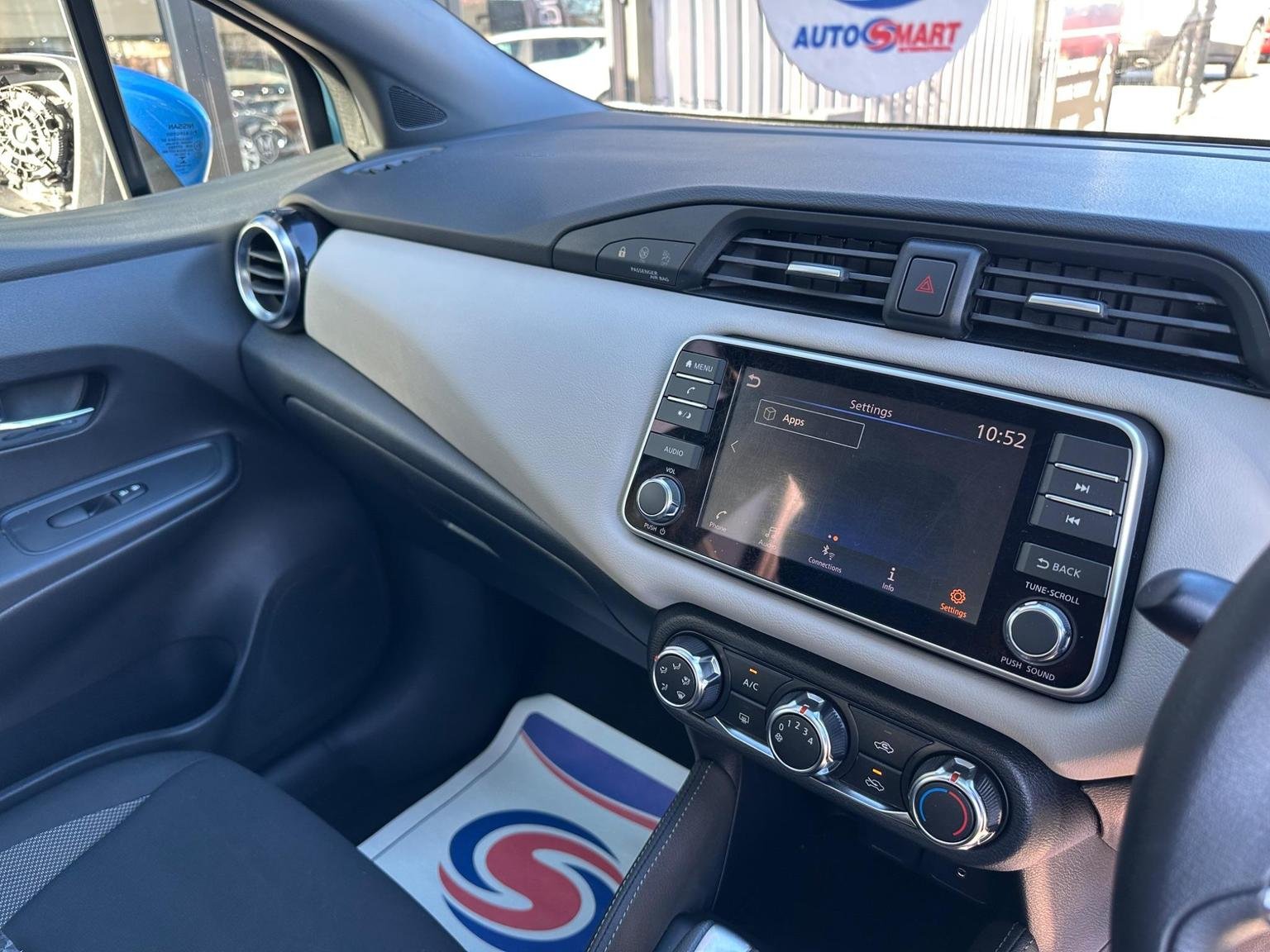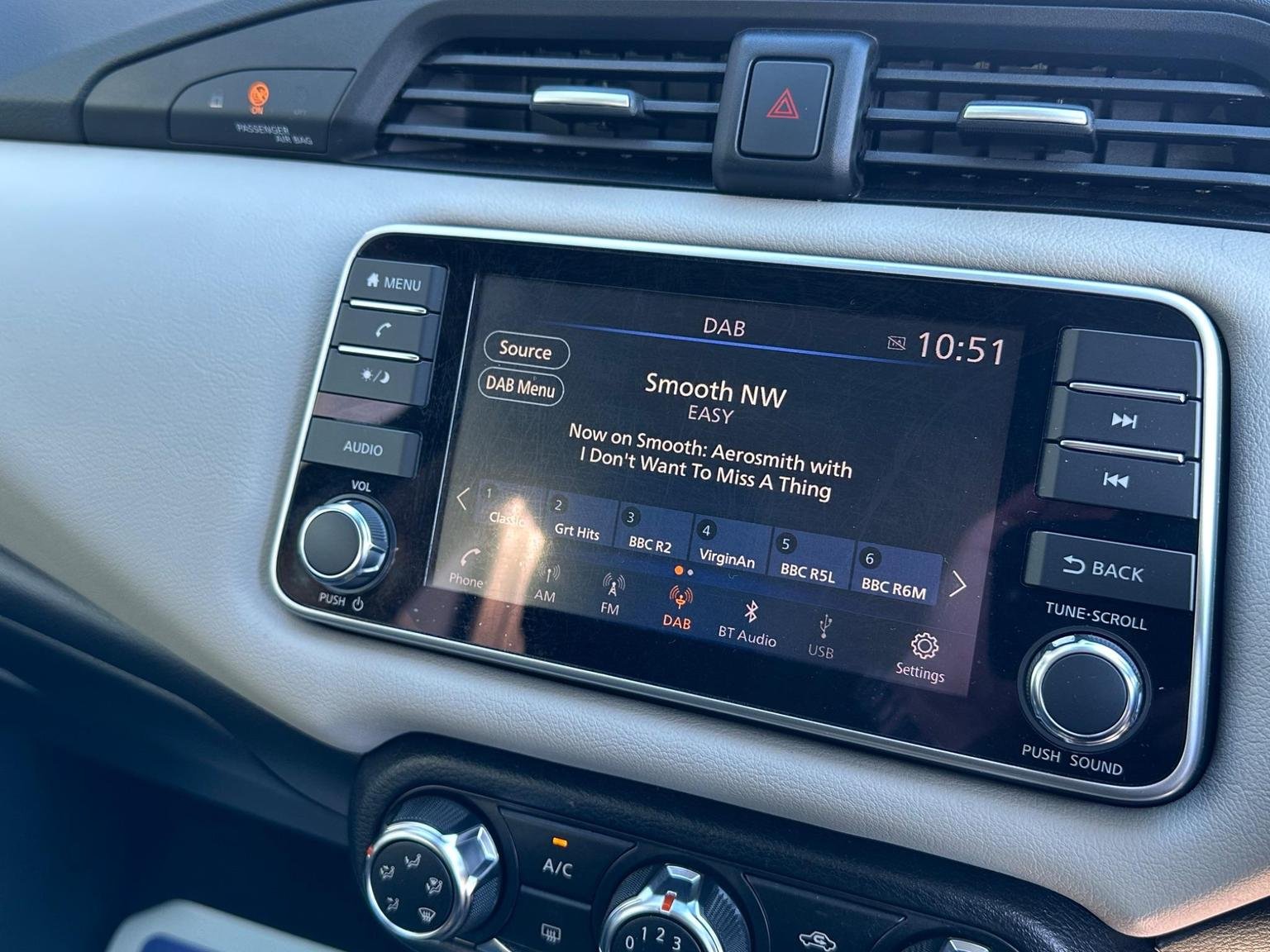 12V Socket - Front, 16in Alloy Wheels, 2 x Front and 1 x Rear Cup Holders, 4 Speakers, 60-40 Split Folding Rear Seats, ABS with EBD and Brake Assist, AUX-In Socket, Advanced Drive-assist Display, Antenna - 300mm, Audio System with MP3, Auto Hazard Lights, Automatic Headlights, Bluetooth, Body Coloured Door Mirrors, Body Coloured Front Door Handles, Boot Cover, Chrome Interior Door Handles, Concealed Rear Door Handles, Crash Warning, Cruise Control, DAB Radio, Door Mirrors with Turn Indicators, Driver and Passenger Sun Visor with Vanity Mirror, Driver-Passenger-Side and Curtain Airbags, ESP - Electronic Stability Programme, Electrically Adjustable and Manual Folding Door Mirrors, Front Console Storage, Front Electric Windows, Front Fog Lights, Front Passenger Seatback Pockets, Front and Rear Door Pockets with Drink Holders, Front and Rear Seatbelt Warning, Gear Shift Indicator, Grey PVC Front Door Pads, Halogen Headlights with Signature Finisher, Headlights - High Beam Assist, Height Adjustable Driver Seat - Manual, Height Adjustable Front Headrests with Satin Silver Decoration, Height Adjustable Front and Rear Seatbelts with Pre-tensioner and Load Limiter, Height and Telescopic Adjustable Steering Wheel, High Mounted Rear Brake Light, Hill Start Assist, ISOFIX Child Seat Anchoring Points, Intelligent Emergency Braking with Pedestrian Recognition, Jacknife Key Type x1, LED Signature Daytime Running Lights, Lane Departure Warning and Prevention, Luggage Room Lighting, Manual Air Conditioning, Map Lamp and Power Window Switch Illumination, Nissan Anti Theft System Immobiliser, Nissan Connect 7in Touchscreen Navigation and Entertainment System, Outside Temperature Gauge, Passenger Airbag Deactivation System, Power Assisted Steering, Rain Sensing Windscreen Wipers, Rear Roof Spoiler, Rear View Camera, Rear Wiper, Reclining Front Seats, Remote Central Locking, Satin Silver Decoration on Gear Knob - Steering Wheel and Air Vents, Smartphone App Integration, Soft Knee Pad with Stitching, Soft Touch Upper Dash, Soft-Touch Upper IP with Grey PC Insert, Speed Limiter, Steering Wheel Mounted Audio Controls, TPMS - Tyre Pressure Monitoring System, Traffic Sign Recognition, Trip Computer, Two Adjustable Rear Headrests, Tyre Repair Kit, USB - iPod Connectivity