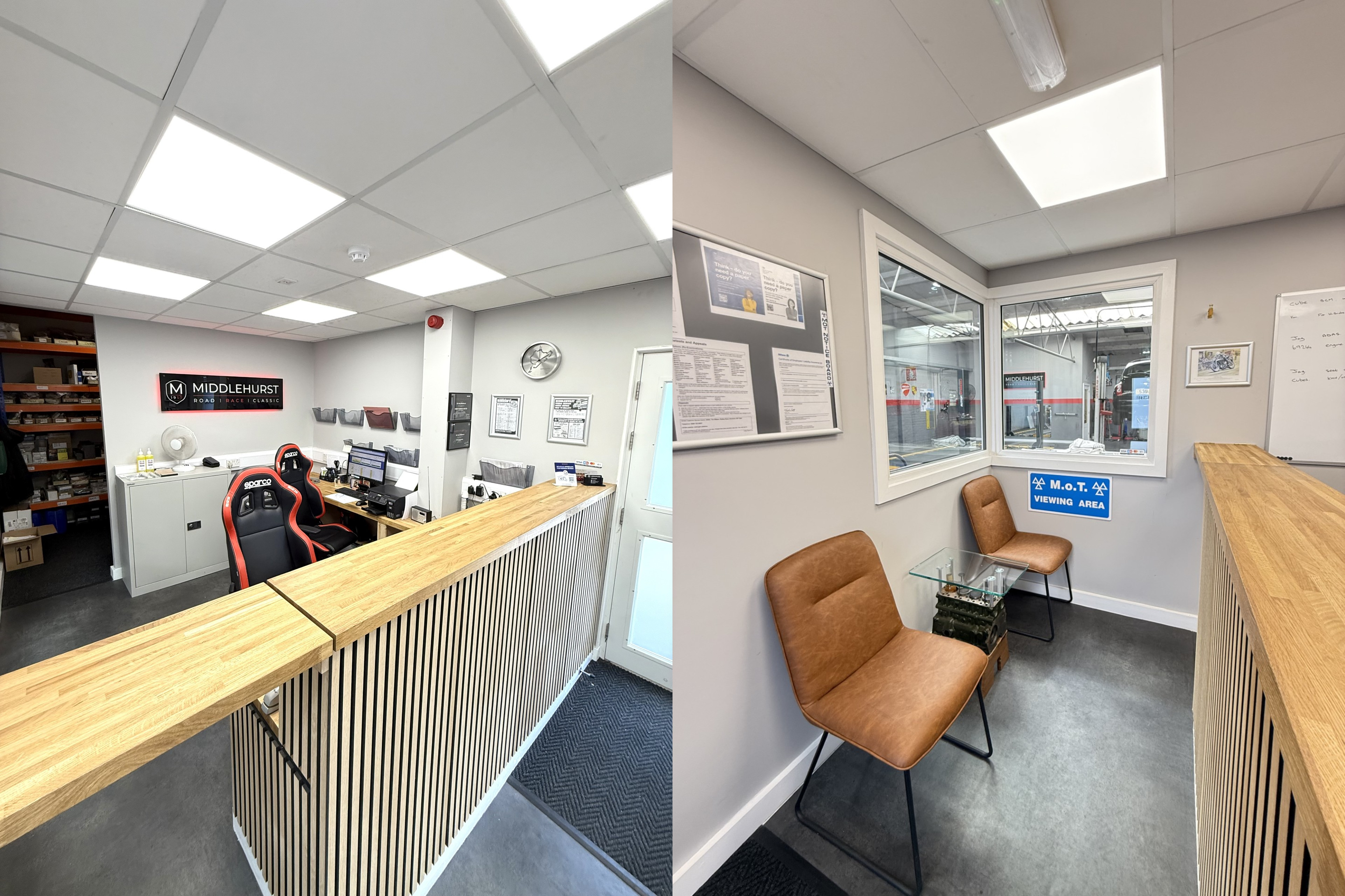 — We have an MOT viewing/waiting area in our workshop reception — or feel free to relax with complimentary drinks in our showroom bar area whilst you wait - (WiFi available).